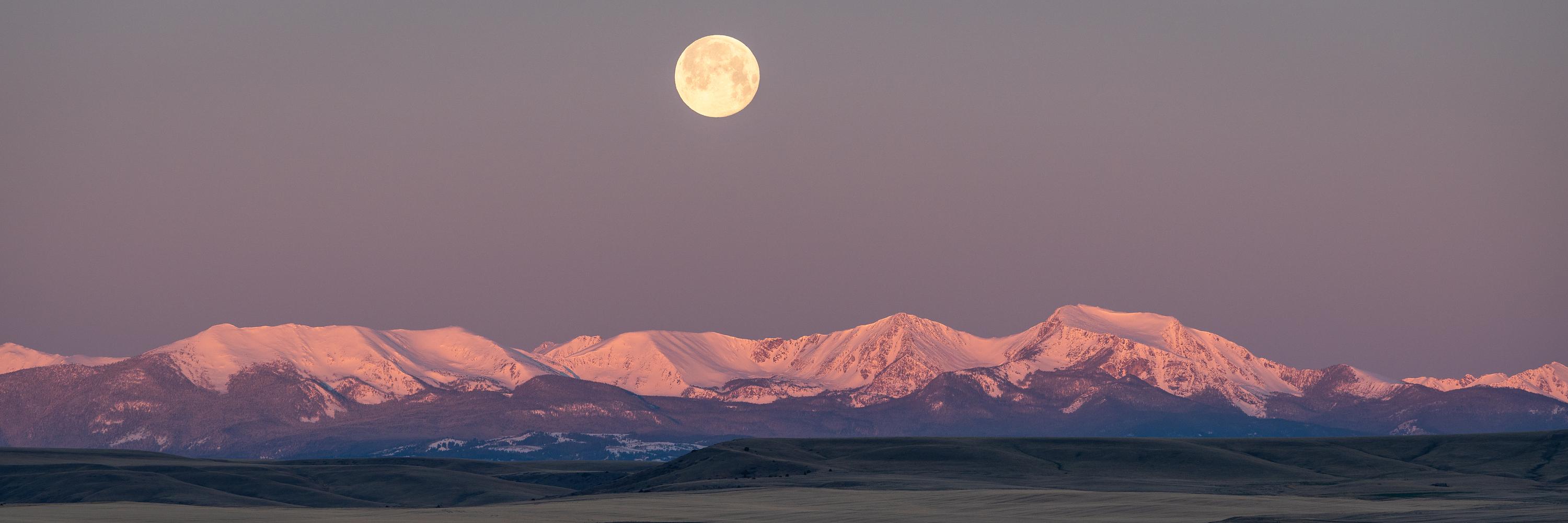 April's Super Pink Moon setting into the Tobacco Root Mountains.