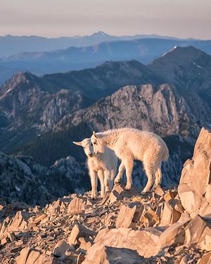 Young mountain goats on Sacagawea Peak in the Bridger Range, Montana